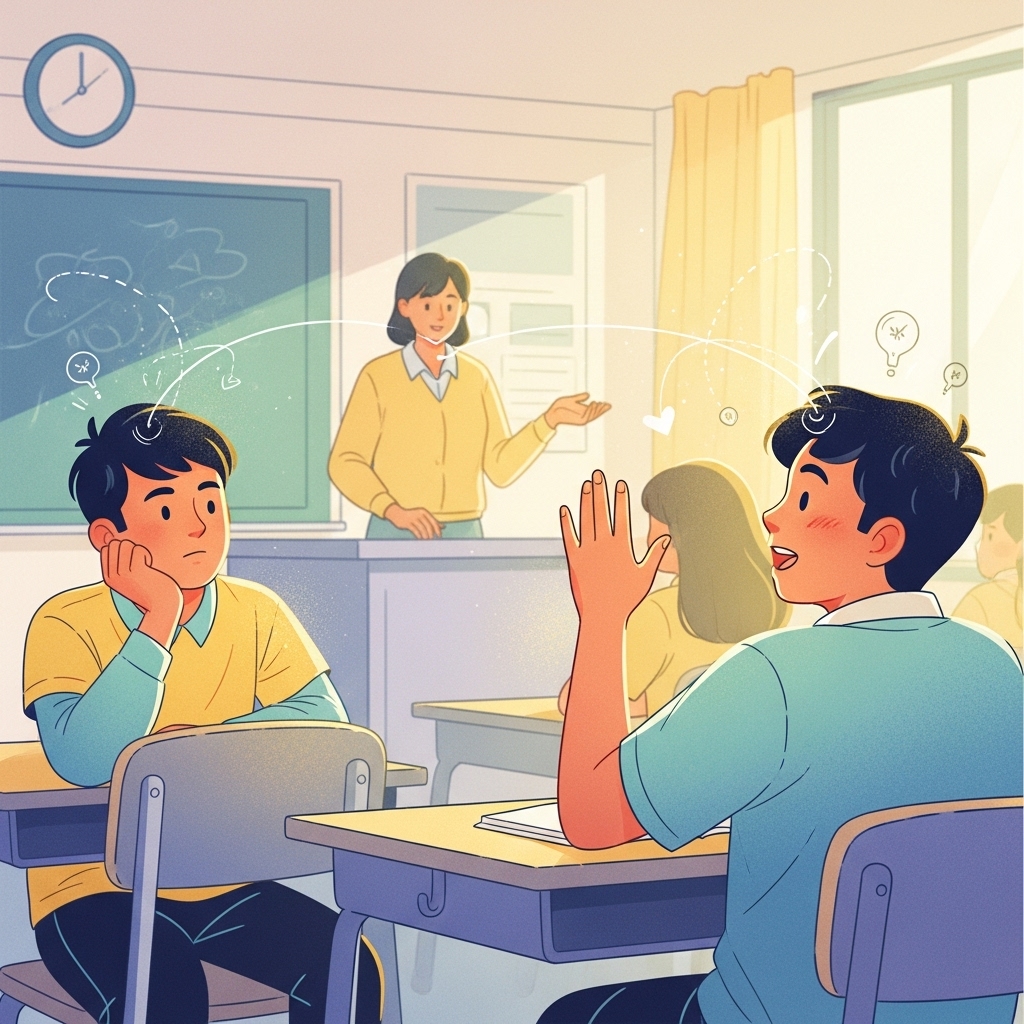 Listens quietly → Copies exactly what’s on the board → Nods along thinking “yes, I understand.”