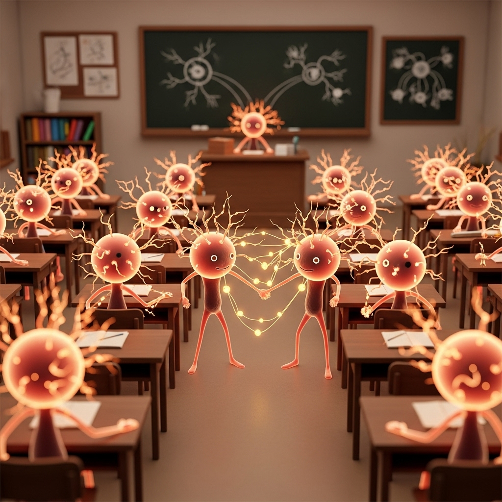 Think of it like building a friendship. The first “hello” might feel awkward, but after a few hangouts (repetitions), that connection becomes solid and natural. That’s exactly how learning works: neurons making friends through repetition.