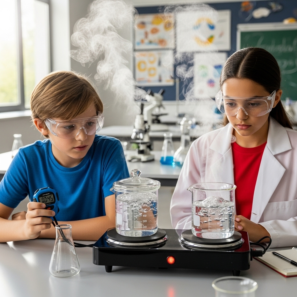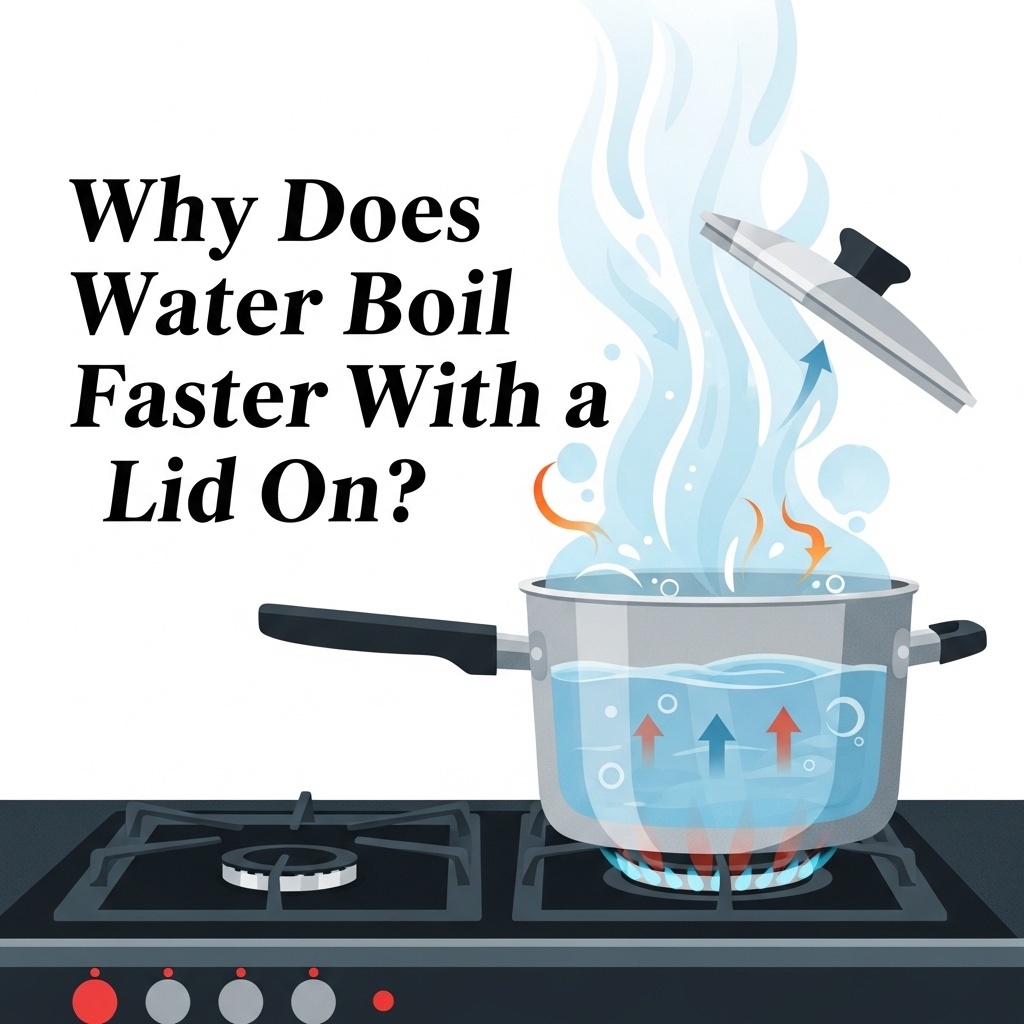 Water boils faster with a lid on because the lid keeps heat and steam trapped inside, reducing energy loss and speeding up the process. It’s a simple but powerful example of applied science in daily life.